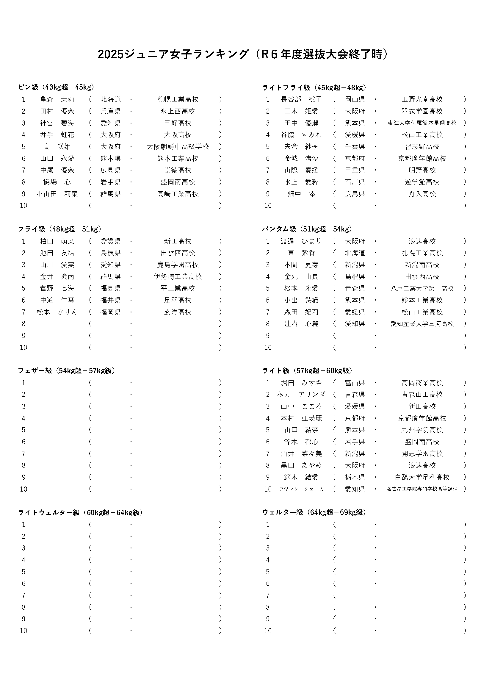 ホーム > 2025ジュニア男女ランキング(R6年度選抜大会終了時点)発表