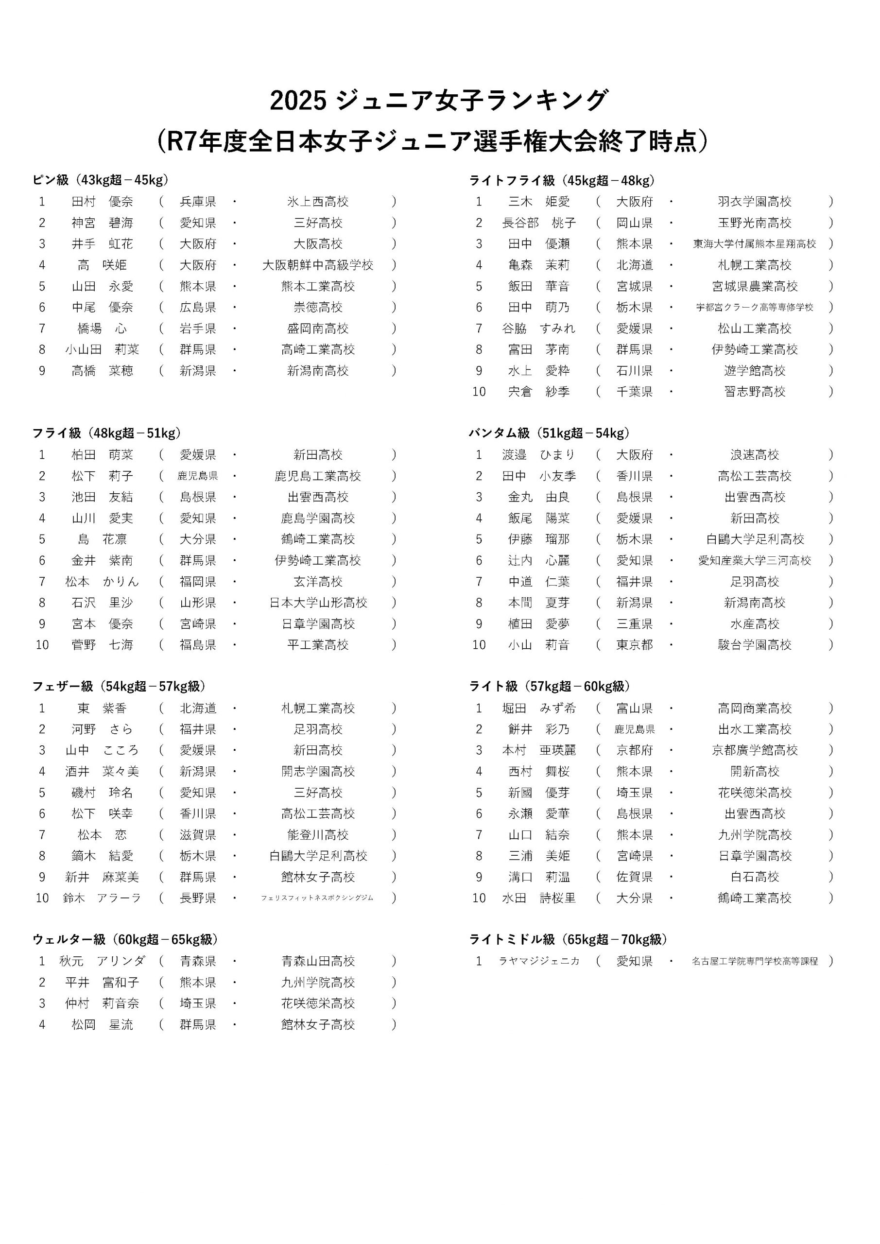 ホーム > 2025女子ジュニアランキング(R7全日本女子ジュニア選手権終了時点)