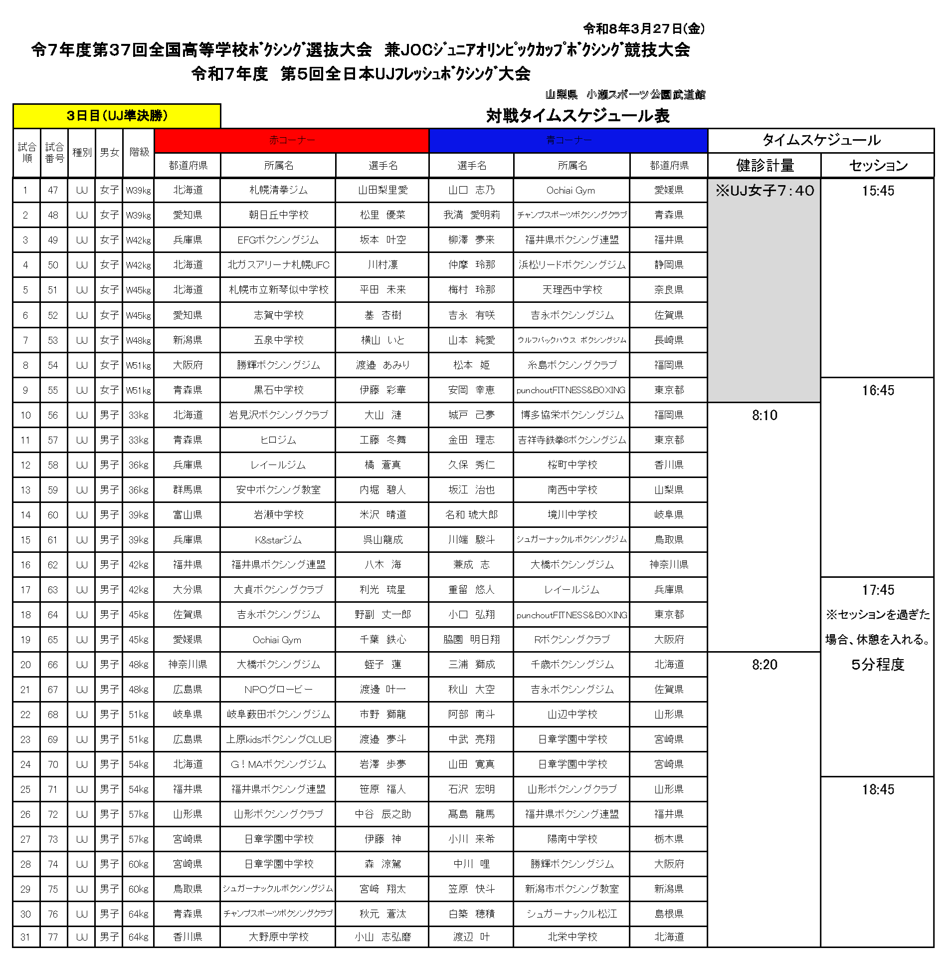 | 会場 | 小瀬スポーツ公園 武道館アリーナ |