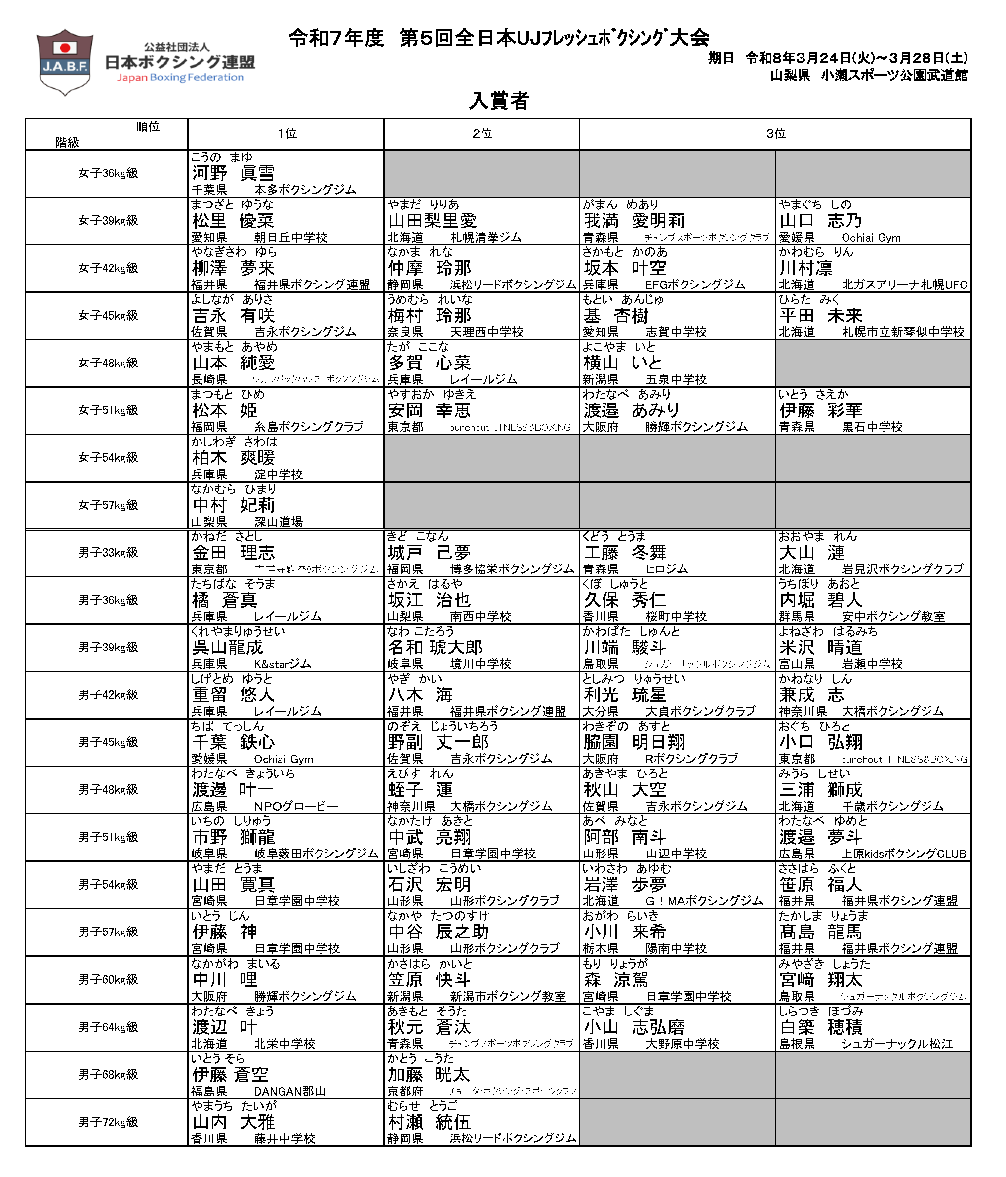 第5回全日本UJフレッシュボクシング大会